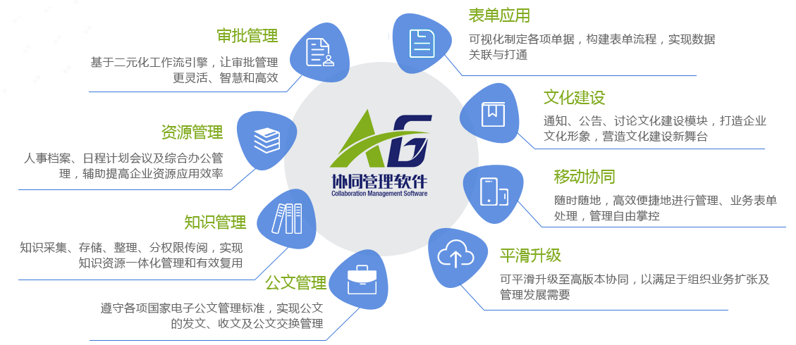 A6 協(xié)同管理軟件是新一代面向中小型企業(yè),是基于互聯(lián)網的高效協(xié)同工作平臺和優(yōu)秀的協(xié)同 OA 管理軟件。融入了先進的管理理念,以提升企業(yè)內部行為管理為主導,實現(xiàn)流程快速審批、傳播組織文化建設、全程共享的溝通和處理,是一套非常適合國情的,在業(yè)內性價比比較高的管理與協(xié)同工具。