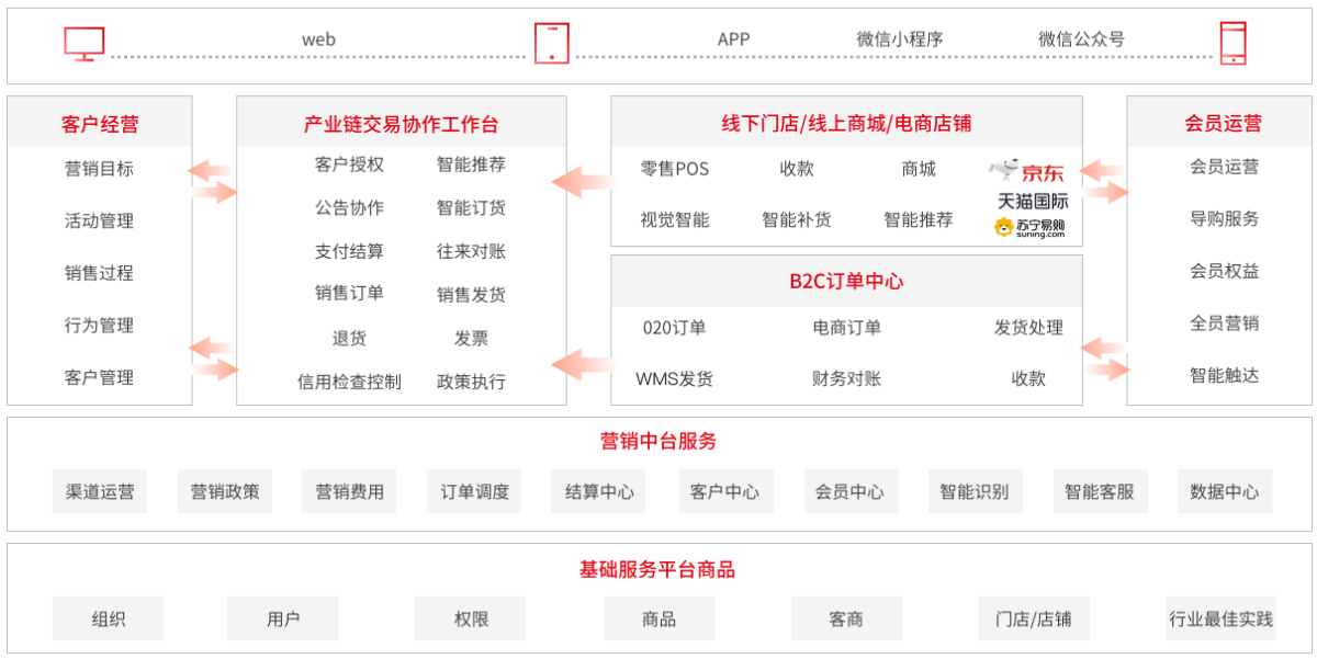基于營銷中臺,打造企業(yè)營銷、交易、管理、會員、訂貨、服務(wù)的一站式平臺